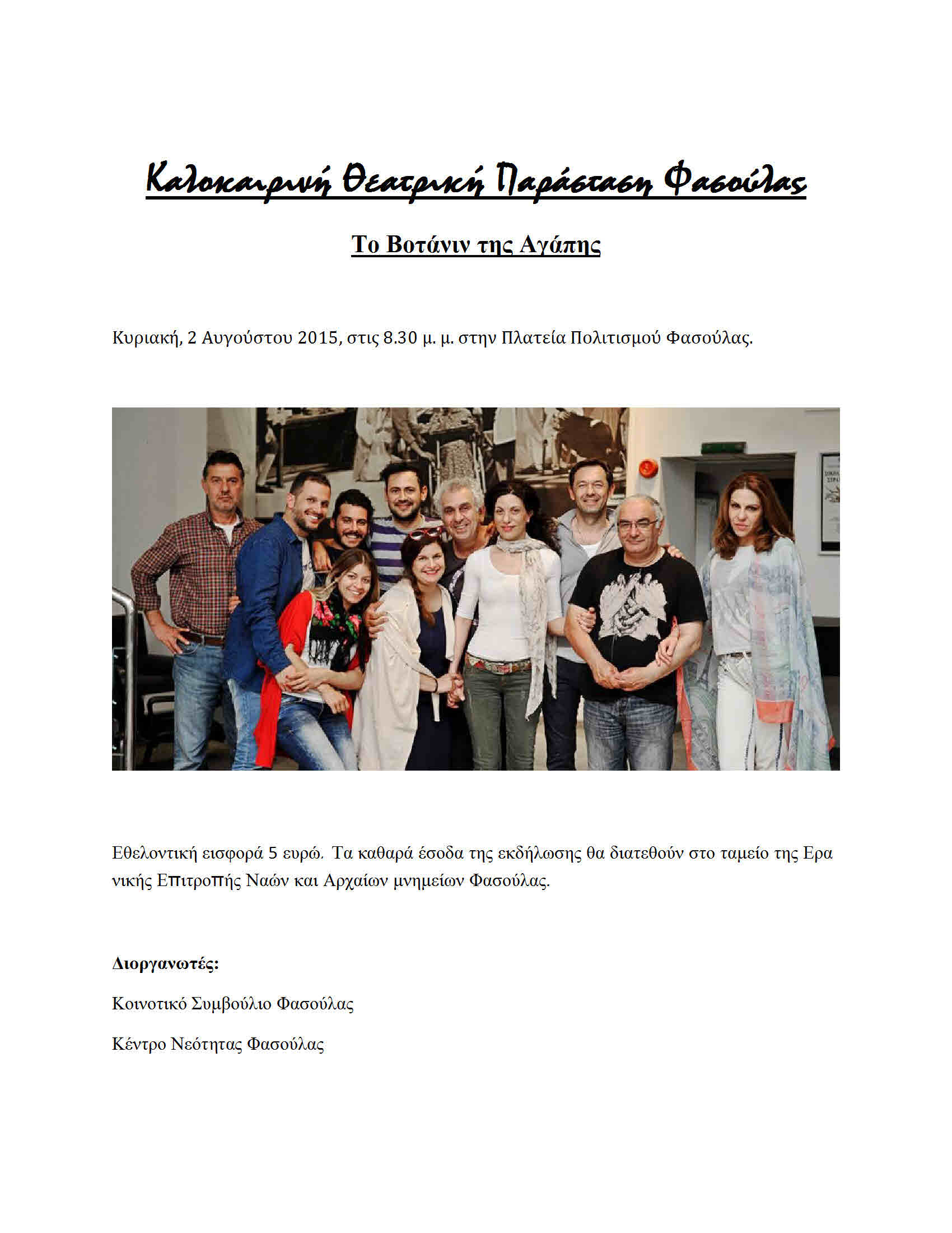 Tο Κοινοτικό Συμβούλιο, το Κέντρο Νεότητας και ο Σύνδεσμος Αποδήμων Φασούλας πραγματοποιούν την καθιερωμένη αιμοδοσία τους, την ΚΥΡΙΑΚΗ 21 ΙΟΥΝΙΟΥ 2015